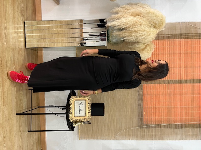 Vestido básico en algodón con manga larga, frunces en cintura y largura midi.